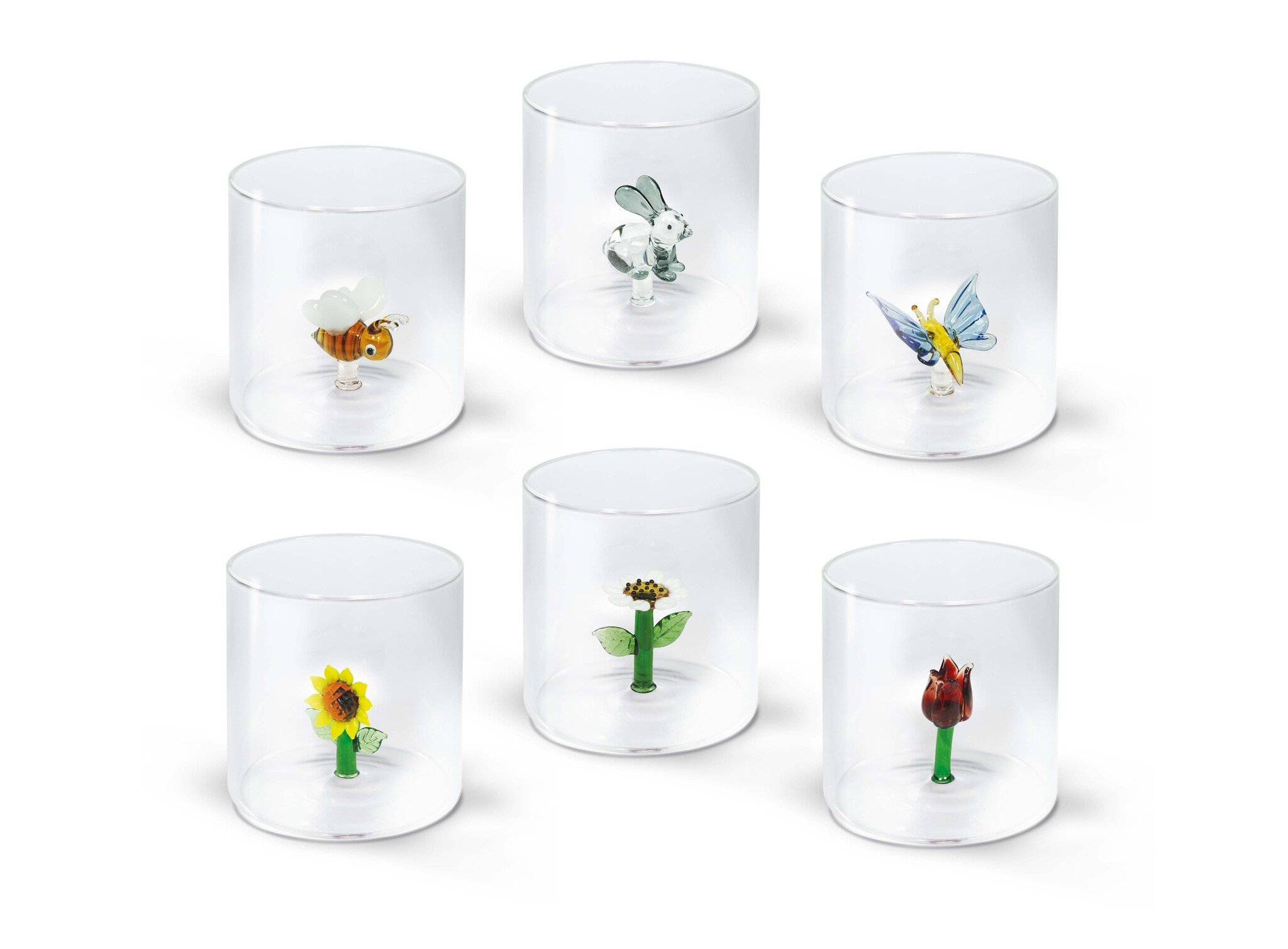 Elk onderwerp is handgemaakt in geblazen glas, waardoor elk glas een uniek stuk is.