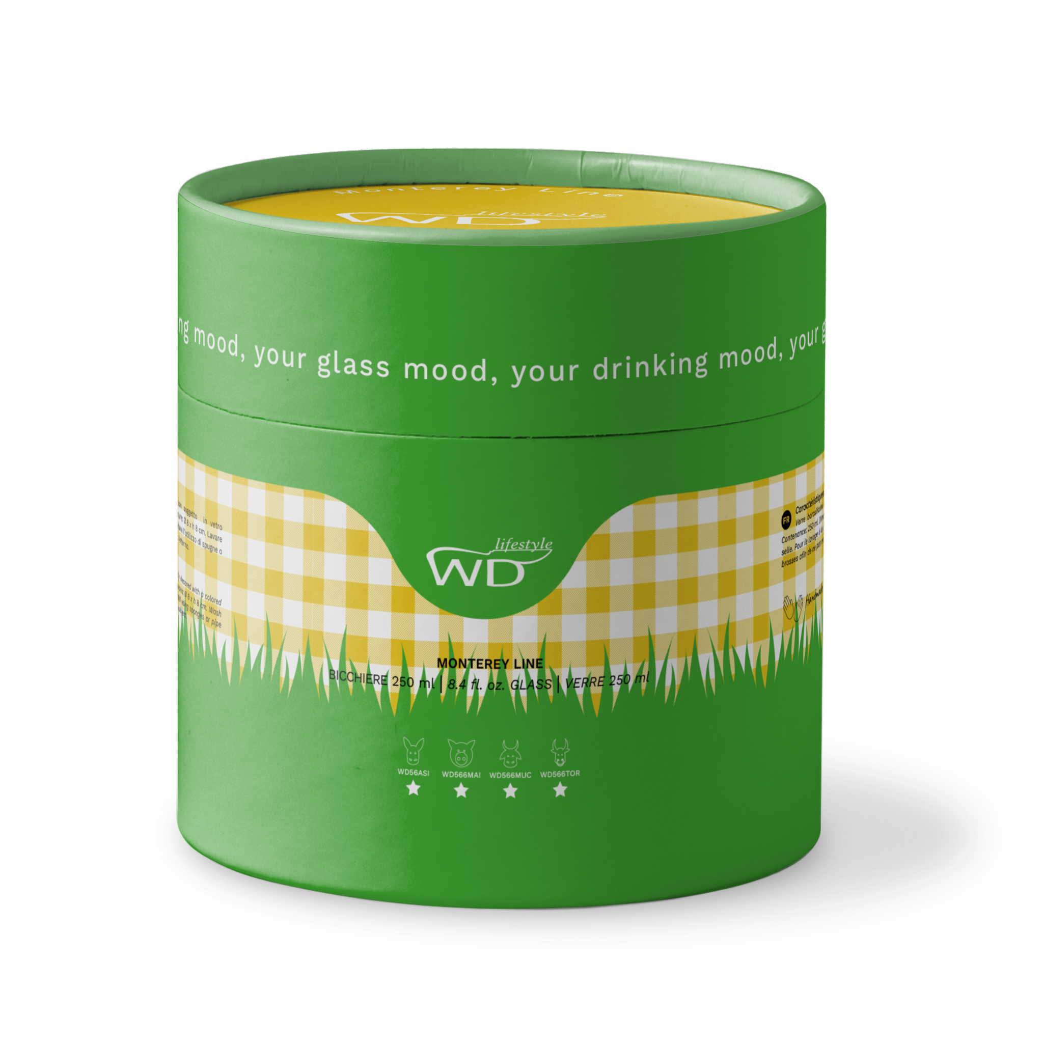 Borosilicaatglas met gekleurde glasdecoratie binnen de Monterey-lijn.