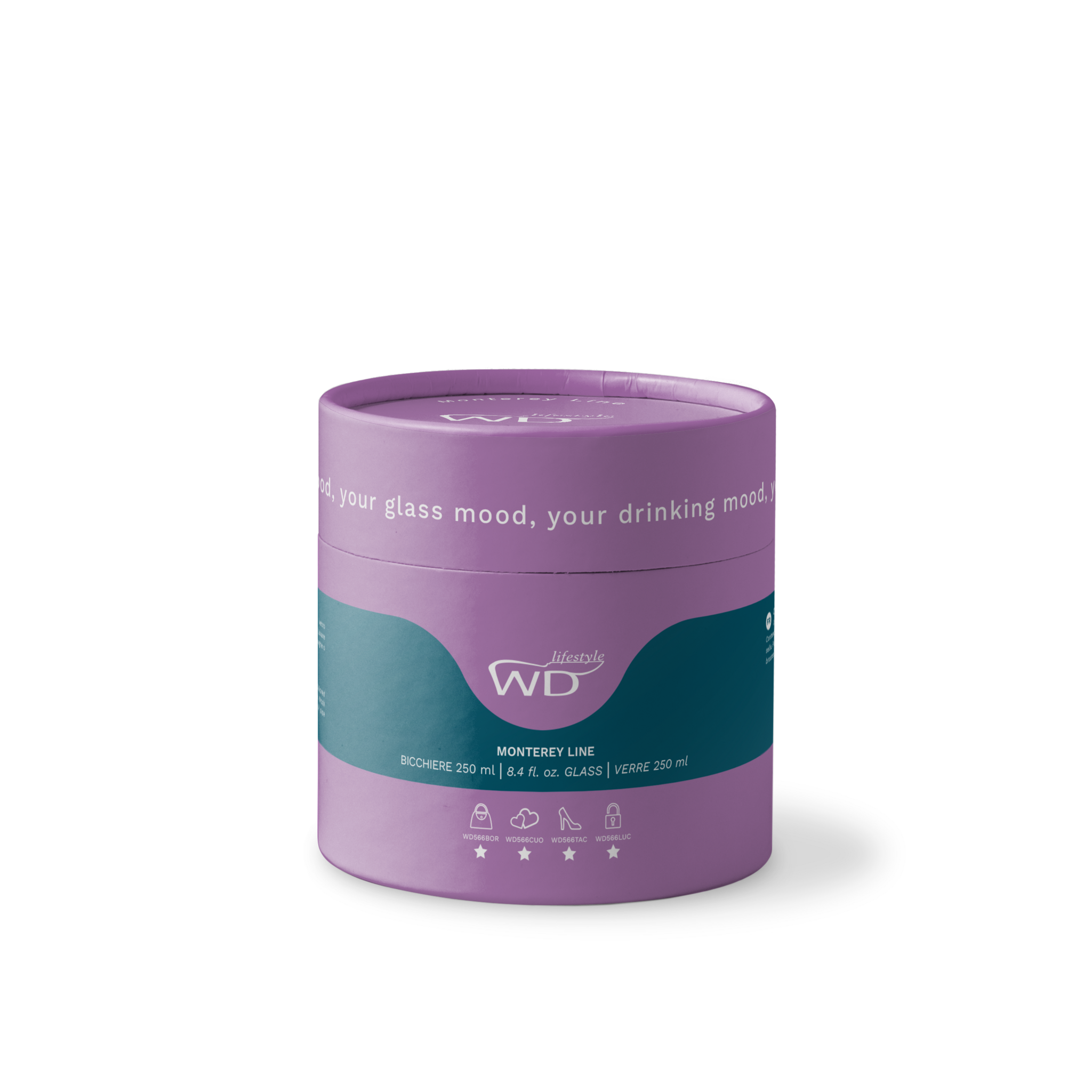 Borosilicaatglas met gekleurde glasdecoratie binnen de Monterey-lijn.