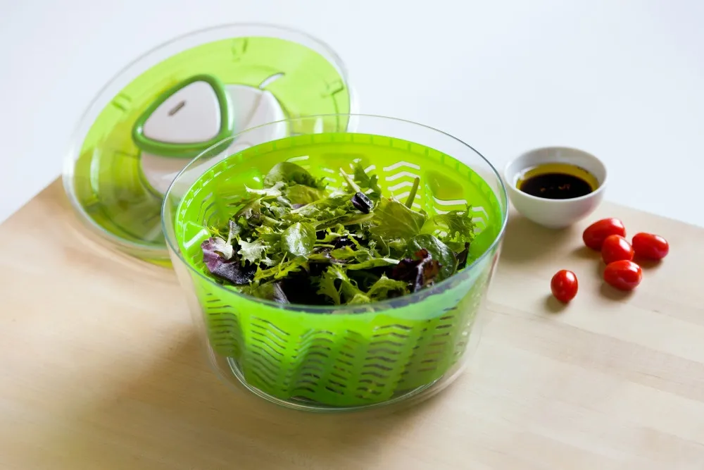 Gebruik de mand als vergiet om onder de kraan de sla te wassen. De extra heldere bowl kan na het drogen gebruikt worden als slakom. Bowl met deksel zijn perfect om sla te bewaren in de koelkast. Het deksel is demonteerbaar voor het gemakkelijk reinigen en drogen.