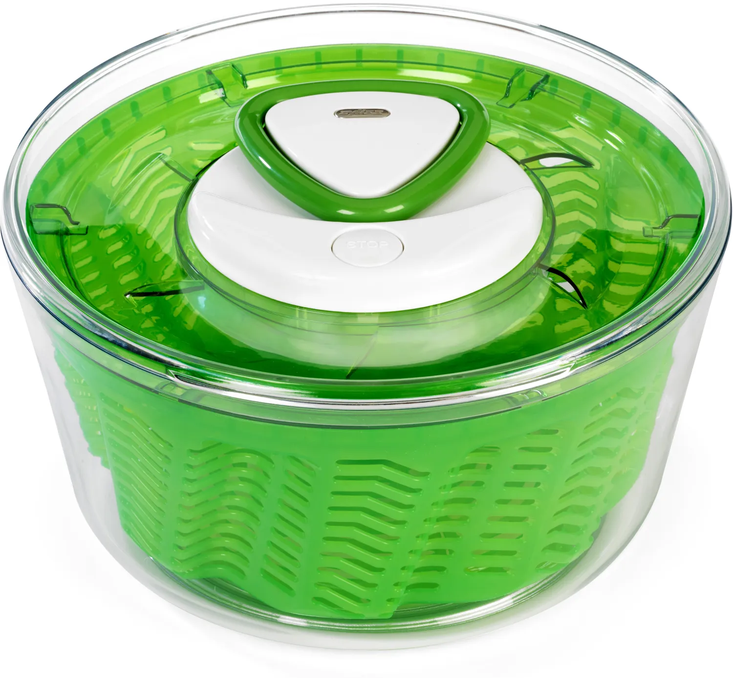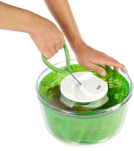 De Easy Spin slazwierder van Zyliss droogt groenten en sla snel en efficiënt. Het uittrekbare snoer en de stopknop met remfunctie verwijderen al het overtollige water en houden de sla luchtig.